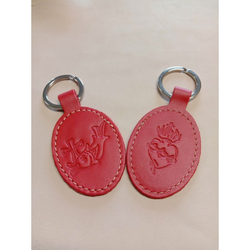 Porte-clés en cuir avec motif poisson et Sacré coeur